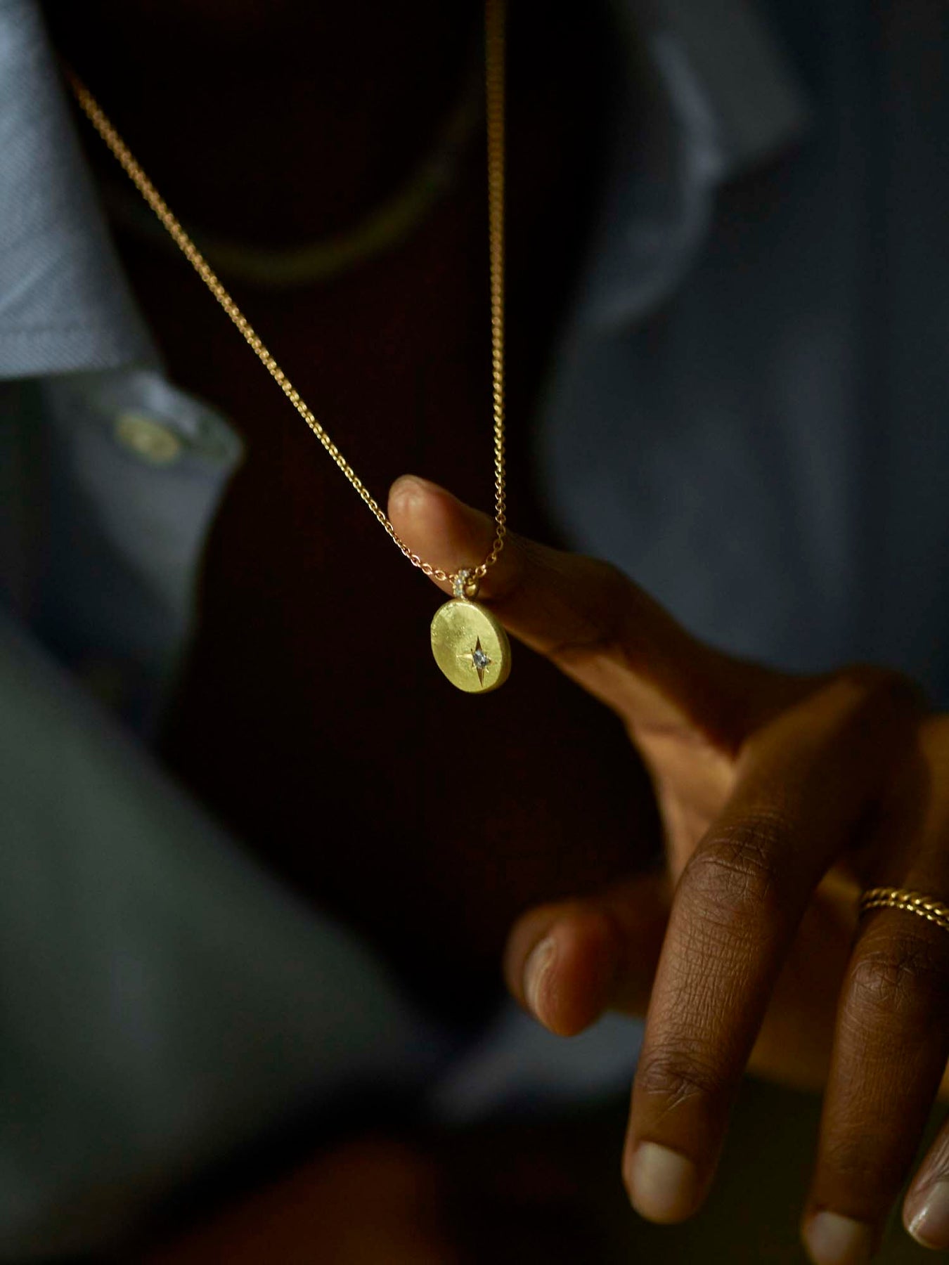 Material: 9ct Yellow Gold & Sterling Silver, 9ct Yellow Gold. Measurement: 10mm pendant. 16" chain.
