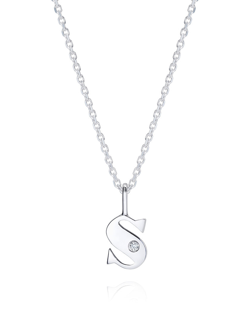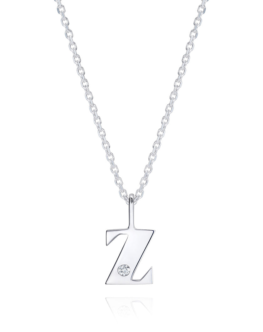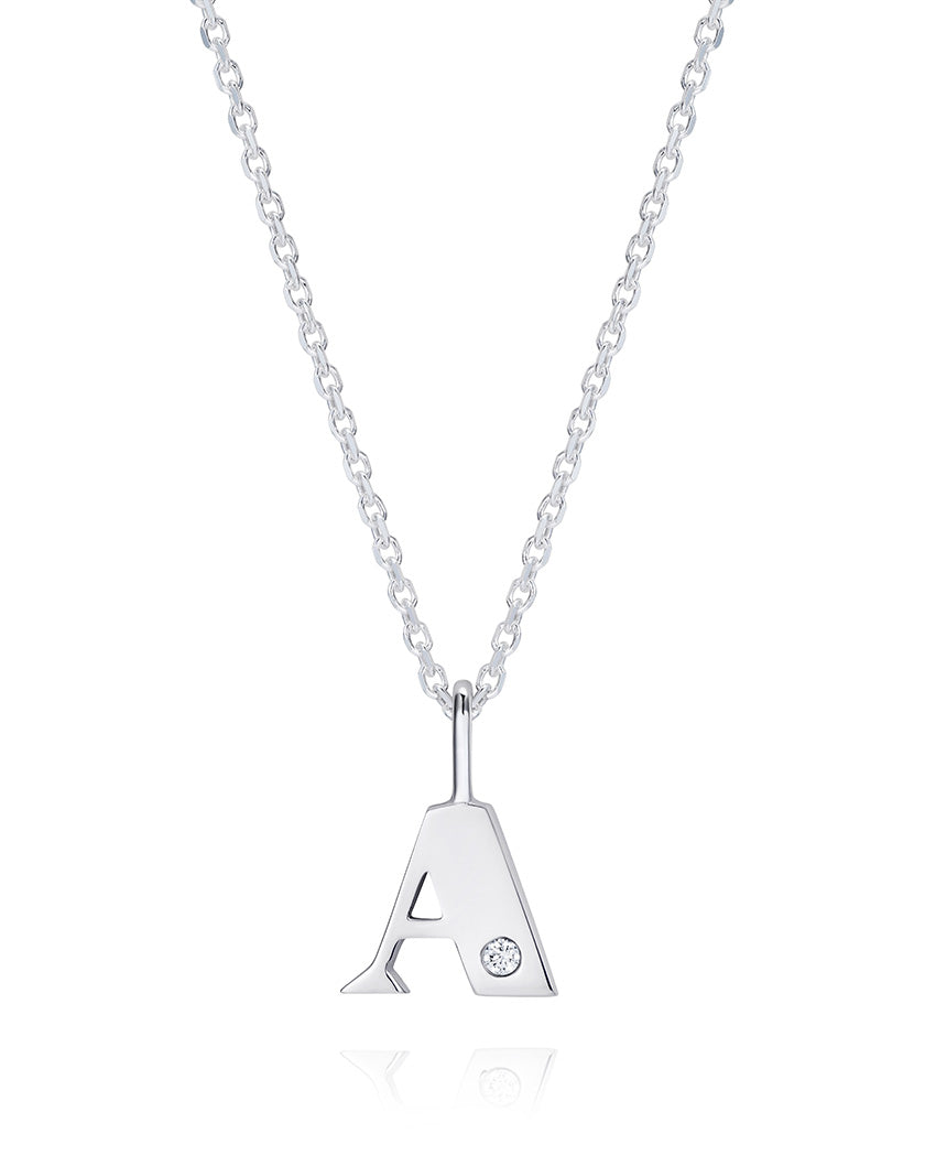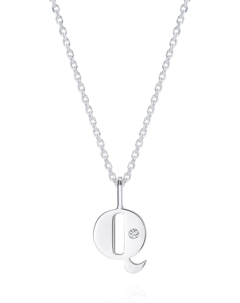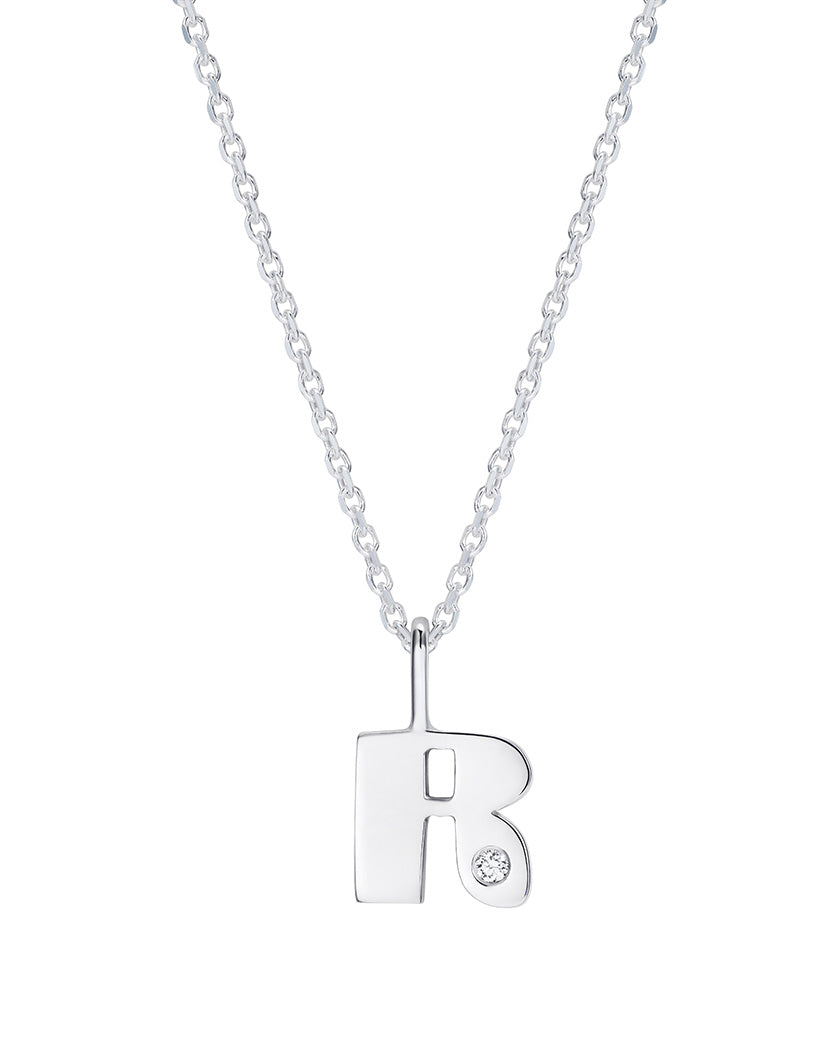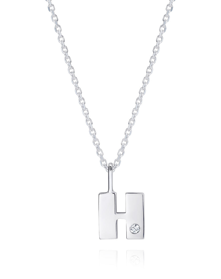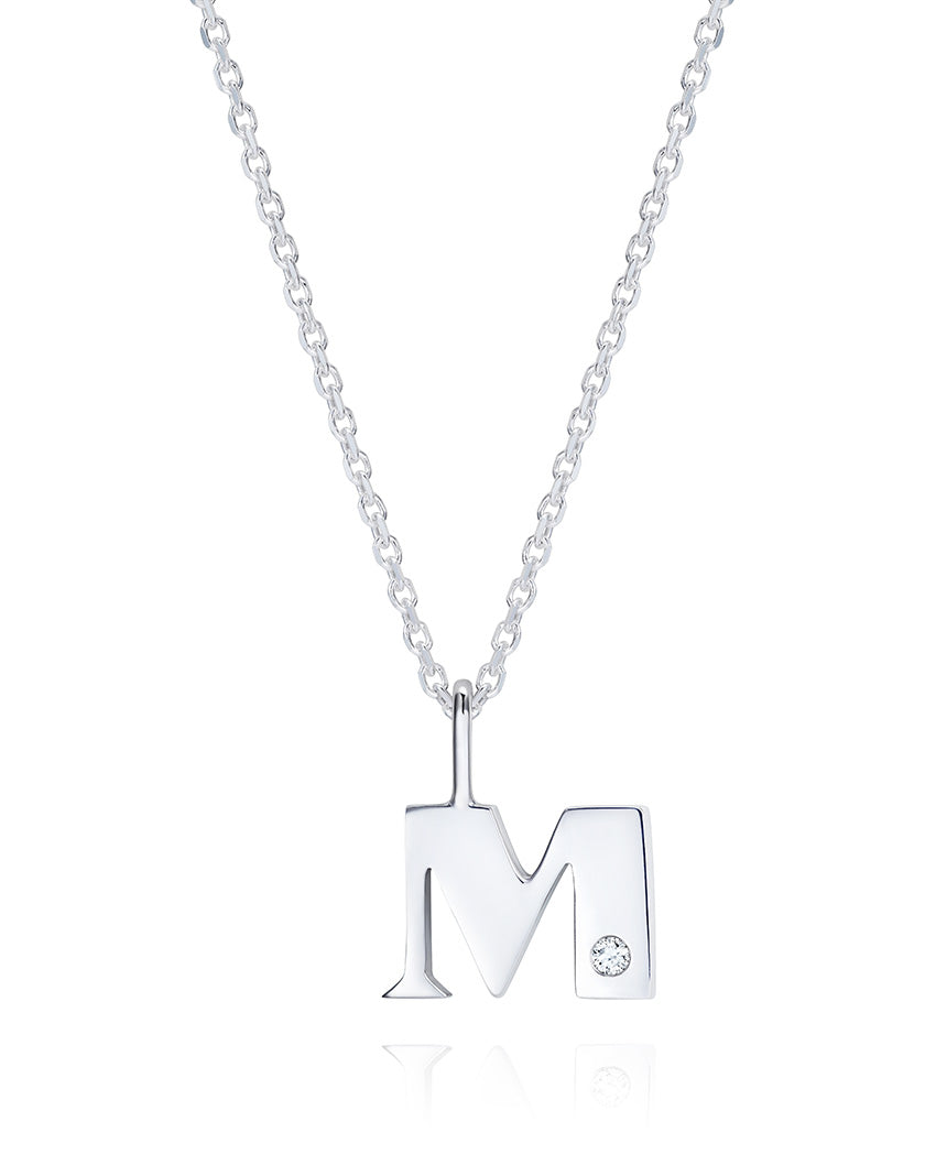 Stone specification: .02ct H/SI diamonds. One 1.5 mm diamond per letter.
