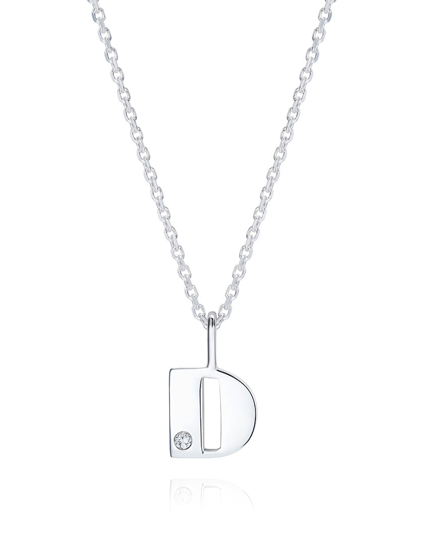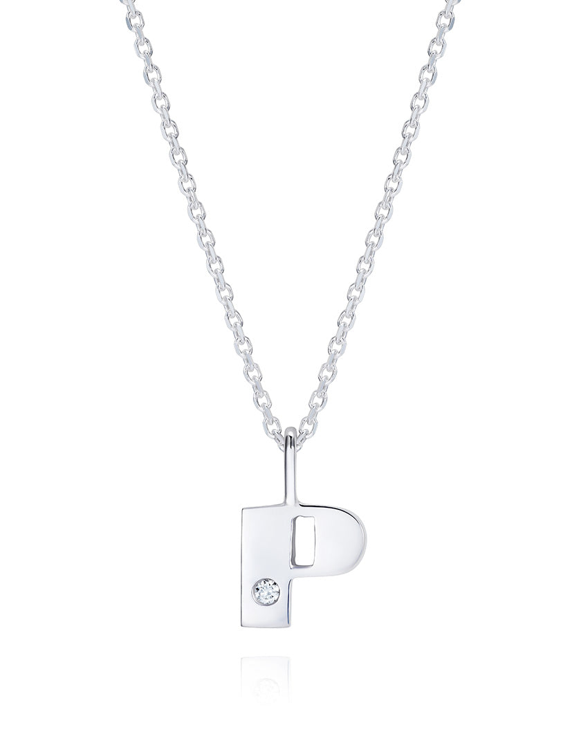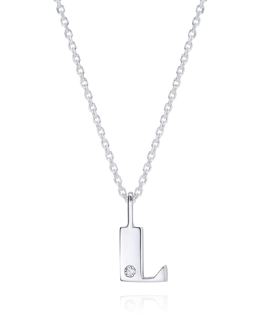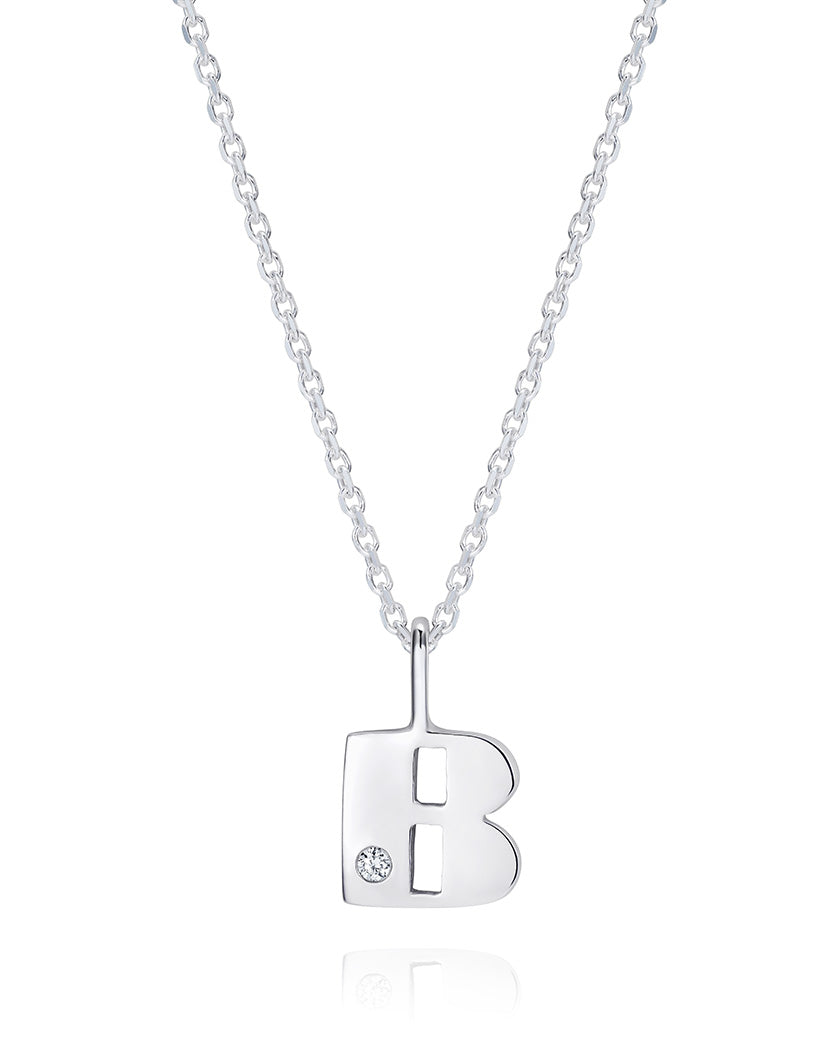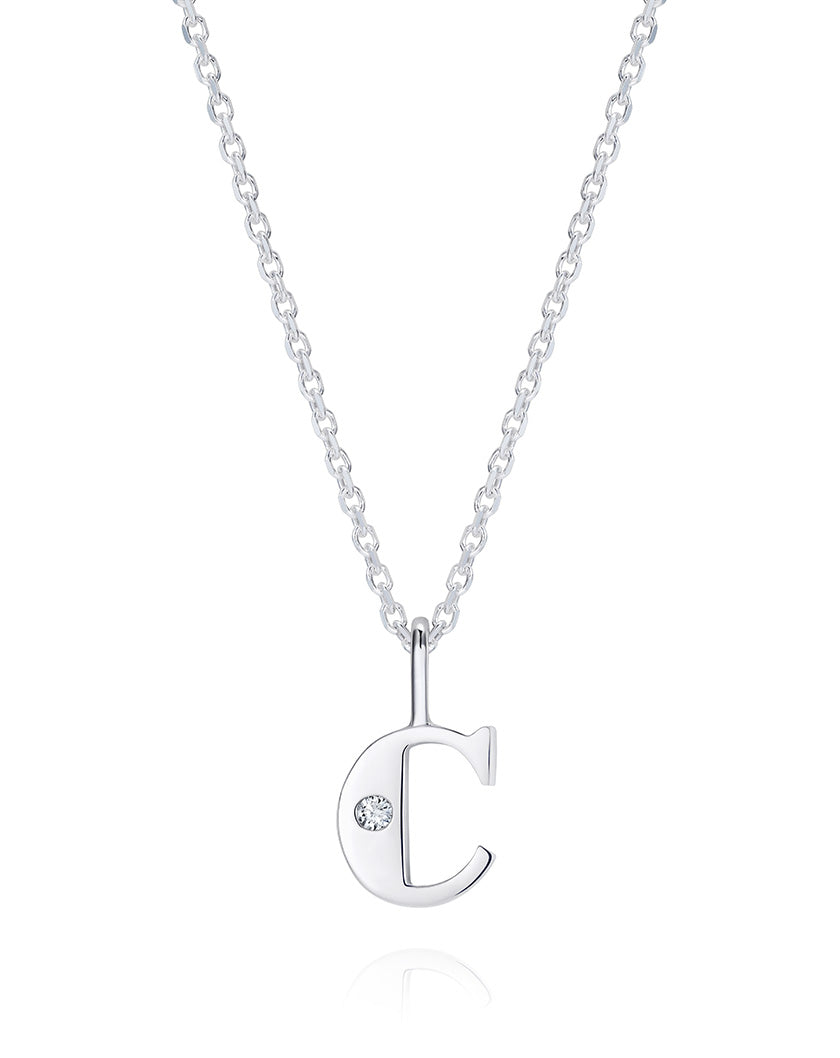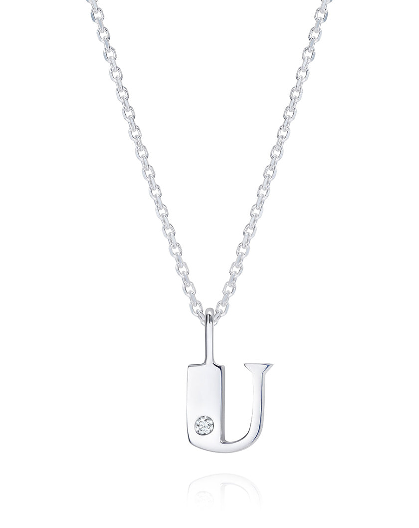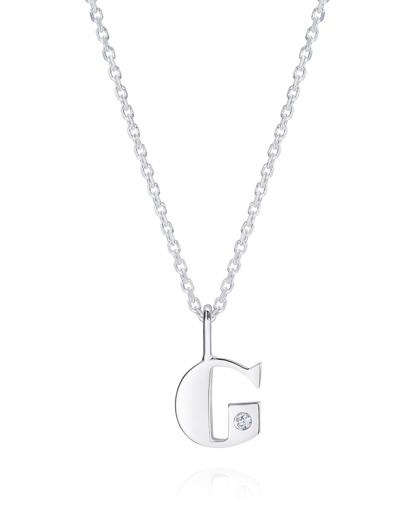 Stone specification: .02ct H/SI diamonds. One 1.5 mm diamond per letter.